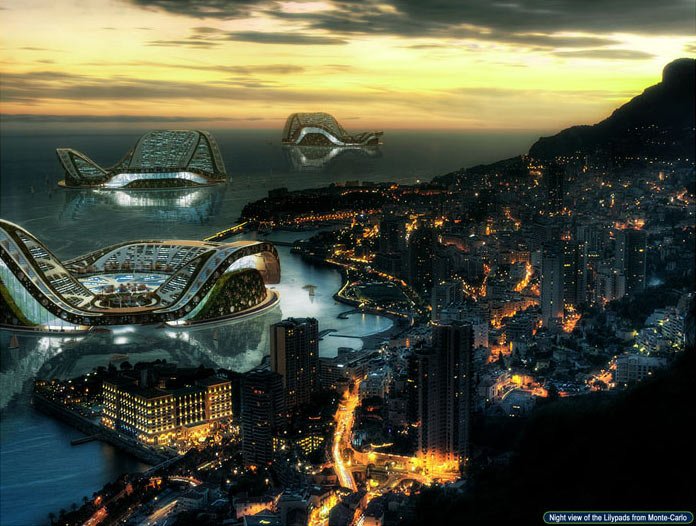 Его острова похожи на водяные лилии, и называются соответствующе – Lilypad. Фактически, это целые плавающие города, рассчитанные на 50 тыс. человек. Такие города будут свободно плавать по океану и не бояться теплых и холодных течений. Не забыл Винсент Каллебот и о экологической составляющей – солнечная энергия, ветровая, энергия приливов, биомасса – в общем, без энергии город не останется в любом случае. А кроме того, специальная титановая «кожа» острова сможет всасывать углекислый газ из атмосферы в свою диоксидную титановую «кожу».